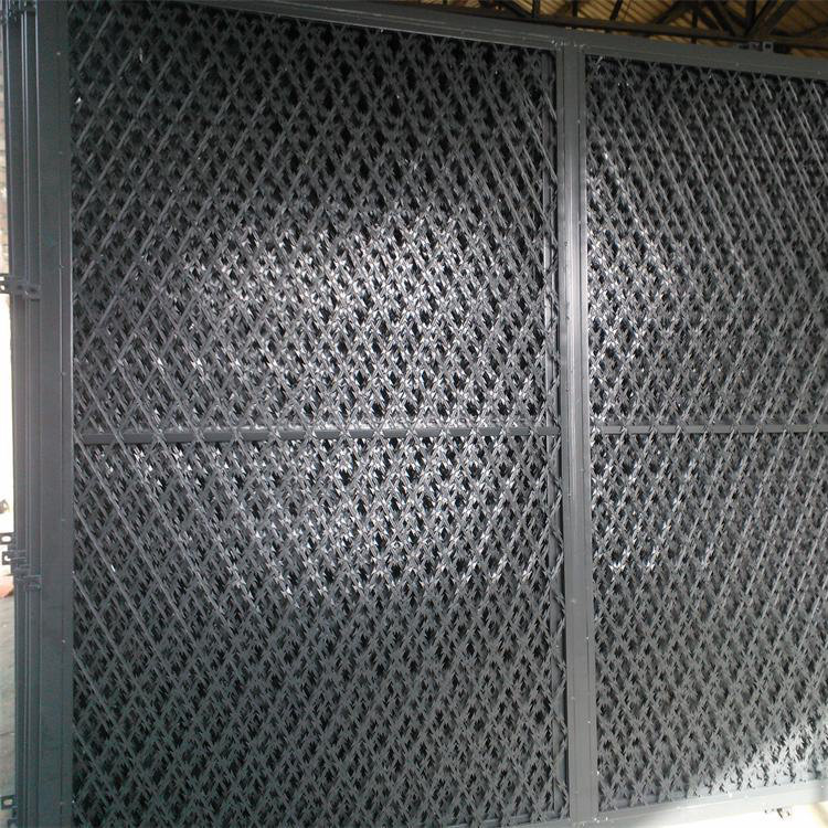 河南洛陽監獄防逃防攀爬刀片刺絲網立柱焊接成Y型,表面浸塑處理,網片高度2000mm-3000mm,長度2500mm-3000mm,V型頂端安裝刀片刺網,直徑采用50cm-60cm,刀片刺網主要是由熱鍍鋅鋼板或不銹鋼薄板沖壓而成的,它擁有尖銳的刀片,高張力鍍鋅鋼絲或者不銹鋼絲做芯線組合而成的產品。由于刺網的形狀很特別,而且每個角度都有尖狀刀片,因而能達到防御保護效果。立柱的選用與設計主要考慮因素為風力,同時考慮人、畜造成的破壞。材料若選用鋼板網和金屬網,其支撐立柱一般采用鋼或鋼塑立柱。出于造價方面的考慮,一般情況下鋼板網和金屬網僅僅在互通立交、停車區服務區等具有比較重要的設施和對景觀有較高要求的地區使用,對于一般路段仍宜采用刺鐵絲隔離柵。刺鐵絲隔離柵立柱的主要材料有型鋼立柱、鋼筋混凝土立柱、木立柱、復合材料立柱等。