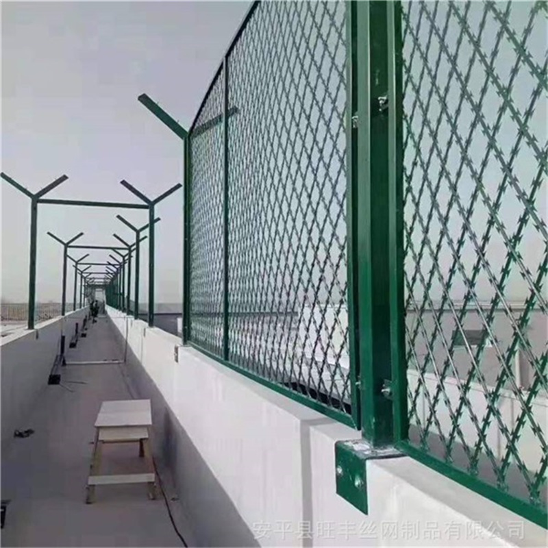 主要是采用高強度的刀片刺網(wǎng)與普通防護網(wǎng)的結(jié)合,由V型支架立拄、加強型焊接片網(wǎng),、全防盜連接件和刀片刺網(wǎng)組成。刀片刺網(wǎng)是一種新型防護網(wǎng),由銳利尖角鍍鋅鋼板或不銹鋼薄板做刀片,鋼絲做芯線組合而成的防護器材。監(jiān)獄防護網(wǎng)采用鋼框架結(jié)構(gòu),主防護網(wǎng)面采用鋼板沖壓網(wǎng)面,不銹鋼滾網(wǎng)采用防腐蝕材質(zhì),整體結(jié)構(gòu)全部采用熱鍍鋅鍍層進行防腐處理,具有結(jié)構(gòu)牢固,無法攀爬,防護能力強的特點,且外感美觀大方,本產(chǎn)品可用于區(qū)域隔離,尤其適合圍裝與監(jiān)獄院墻內(nèi)外用于防止犯人越獄。