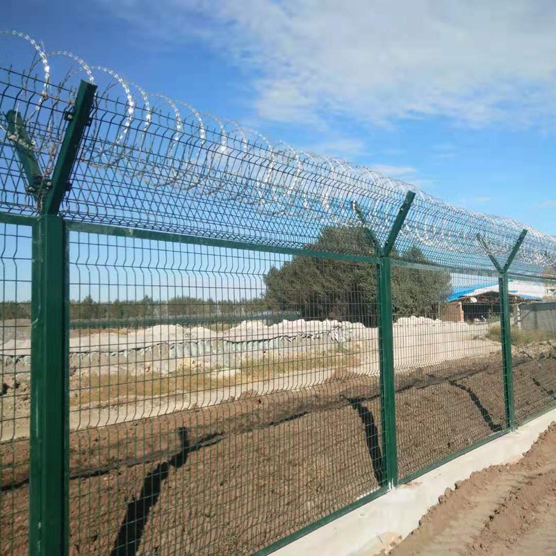 機場Y型護欄網隨著現在生活節奏的加快,生活水平的提高,人們在出差或者游玩時,會選擇乘坐飛機,那么飛行區就要保證沒有非工作人員和小動物誤入跑道,對飛機的起飛與降落造成危險。為此機場四周會安裝機場護欄網, 又稱作“Y型安全防御護網”,機場隔離網、機場圍界網是由V型支架立柱,加強型焊接網片,安全防盜連接件和熱鍍鋅刀片刺繩組成的安全防御性級別很高的護欄網。具有安全性高、防攀爬能力好,網片連接方式采用特制SBS緊扣件,有效防止人為的破壞性拆卸。如果在機場Y型護欄網頂部加裝刀片刺絲、刀片刺網后又很好的增強了安全防護性能。采用電鍍、熱鍍、噴塑、浸塑等防腐形式,具有很好的、抗曬、耐腐蝕等特 點。其產品造型美觀、花色多樣,既起到圍欄作用,又起到美化作用。