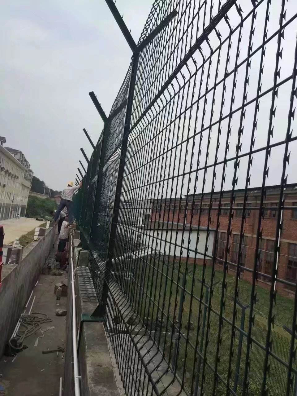 內4米高隔離網這里說的是我們監獄、監區使用的一款隔離網,用于防止犯人逃跑設立的一款隔離網。內4米高隔離網監獄隔離網由邊框,Y型立柱,V型支架,加強型焊接片網,安全防盜連接件和刀片刺籠這些構件組成。客戶要詳細說明這些組成構件的材質、規格,例如監獄隔離網的刀片刺網是采購不銹鋼304材質刀片刺網還是鍍鋅材質刀片刺網。V網是否折彎或者增加加強筋,有的客戶為了造價低也選擇不用V網,而是在形柱上焊接刺繩勾,直接把刀片刺繩掛在立柱上,用4根3mm左右鍍鋅絲加固。