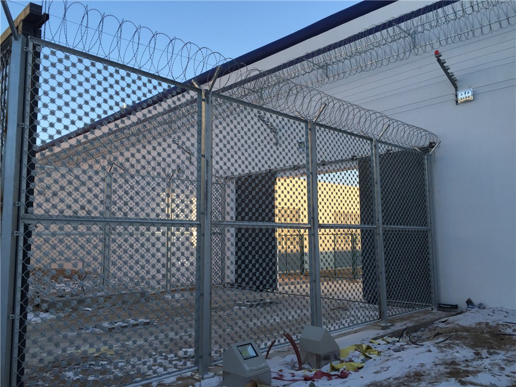 梅花刺片隔離網具有嚇阻、防翻越等效果材質堅硬高強度張力, 造型設計獨特,不宜觸摸因而能達到極好的防護隔離效果監獄鋼網墻還具有施工簡便經濟實用等優點,專用于監獄看守所、哨所、邊防、圍禁區域、軍事防御防護等危險地區的防護。