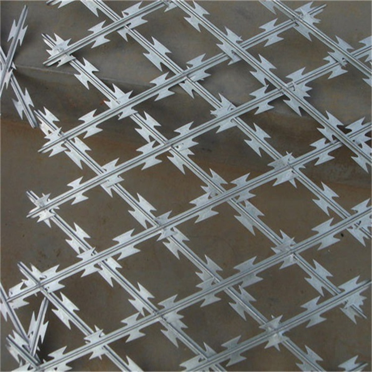 刀片刺繩又稱為刀片刺絲、刀片刺繩,是一種新型安全防護網。刀片刺繩的主要材料是高強度的不銹鋼,具有耐腐蝕、耐磨損、耐高溫等特點,可以在各種惡劣環境下使用。刀片的設計采用鋒利的三角形或鋸齒狀,能夠有效地刺破入侵者的皮膚,起到威懾和阻止的作用。 刀片刺繩具備美觀大方、性價比高、防阻效果明顯、工程施工方便快捷等優良特性,刀片刺繩被廣泛應用在很多國家的礦山企業、園林景觀公寓樓、邊防部隊、國防軍事各個領域、牢房、拘留所、政府部門房屋建筑和其它國家安全防護設備。刀片刺繩是通過熱鍍鋅鋼板或金屬薄板沖壓模具出尖銳的刀塊狀,高支撐力熱鍍鋅鋼絲或刀片刺繩者不銹鋼鋼絲繩做銅芯電纜所組成的隔絕器械。