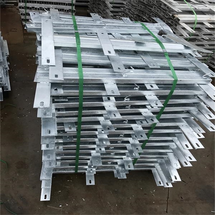 鐵路刺絲滾籠支架為立柱支架采用50*30mm, 壁厚2mm,矩形鋼管和寬50mm厚度4.5mm長度分別為246mm和428mm的兩塊0235扁鐵焊接制作。距形鋼管上部焊接掛鉤采用長度30mm絲徑5mm冷拔鋼筋制作,加密支架采用樣與立柱支架的矩形鋼管制作,表面進行熱鍍鋅處理,鍍鋅量270g/。階梯文架與立柱支架相應(yīng)采用材料一致,只是高度為1005mm,普通立柱支架為730mm,一般3m間距中間按一處加容支架以增牢堅固性支架與防護柵欄采用支架抱箍連接。