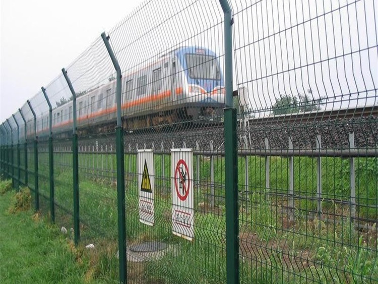 鐵路護欄網起到隔離鐵道線路、防止行人、車輛穿越,兩側邊框各焊接四個邊框用連接板,其中三個通過防盜螺栓與立柱連接,頂部安裝彎頭小立柱,網片跟立柱采用防腐防盜螺絲和連接件連接在一起。安裝時做到嚴、齊、順、美,橋下封閉不得留有空隙,柵欄方向沿橋梁方向順直。