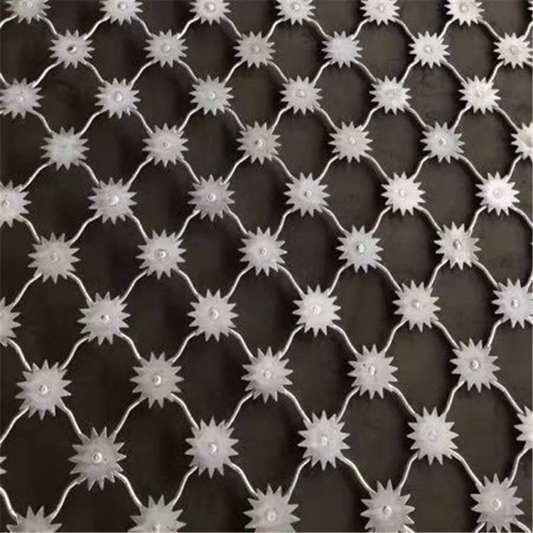 2.梅花刺片,梅花刺片是監獄梅花刺片護欄網的核心部分,它由多個尖銳的刺片組成,形狀類似于梅花,因此得名。梅花刺片采用高強度鋼材制成,具有堅固耐用、鋒利尖銳的特點,能夠有效地防止人員攀爬和破壞。