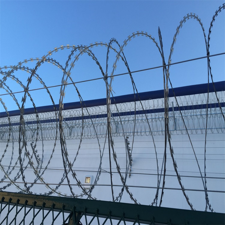 總之,鐵路水泥柵欄頂部的刀刺網是鐵路安全防護體系中的重要組成部分,通過其獨特的設計和安裝方式,為鐵路線路的安全運行提供了有力的保障