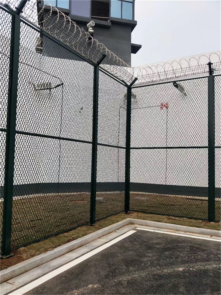 2、監獄警戒區隔離網墻設計要求整體連貫一致,框網方正,對角線誤差不大于50px。隔離網網頁安裝離地距離5-200px,框網與立柱