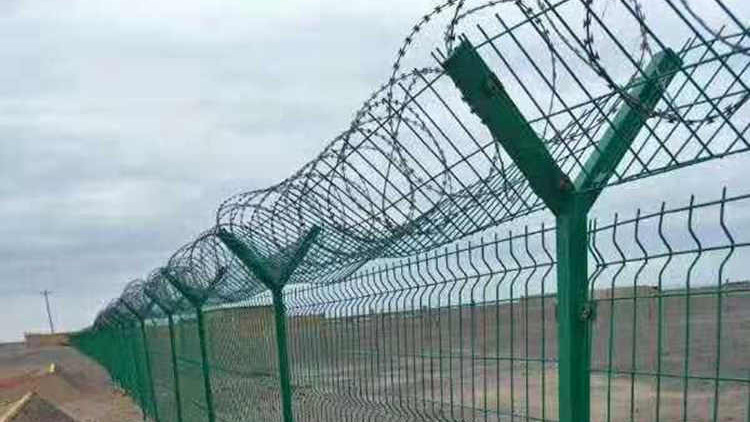 (2)測量各立柱基礎標高,保證安裝后蛇腹形刀刺網頂面的平順和美觀。階梯狀設置段,測出臺階的高度以確定立柱的高度。