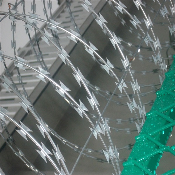 刀片刺網(wǎng)的形狀為直線交叉狀的,鋒利的刀片刺網(wǎng)防止攀爬性能更高,網(wǎng) 絲;優(yōu)質(zhì)鋼絲。刀片鍍鋅鋼板。工 藝熱鍍鋅-沖壓。型