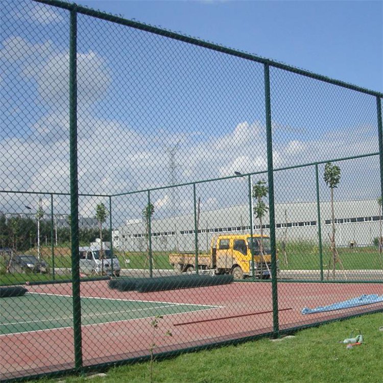 球場圍網(wǎng)各組成部分的表面處理:圍網(wǎng)采用PE/PVC包塑絲,立柱、邊框采用噴塑、浸塑處理。網(wǎng)體高大不易攀爬,顏色亮麗,防腐性好,網(wǎng)面有彈性抗沖擊力強,不易因外力撞擊而變形, 體育球場圍網(wǎng)材質(zhì):優(yōu)質(zhì)低碳鋼絲,編織焊接。