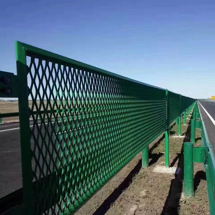 高速公路鋼板網護欄材質:鋼板網護欄網片采用優質鋼板沖切拉伸制成。鋼板網片的網眼均勻連接,立體狀;橫向通透,結點無焊接,整體性牢固抗剪切抗破壞性強;網身輕巧、造型新穎、 美觀實用。