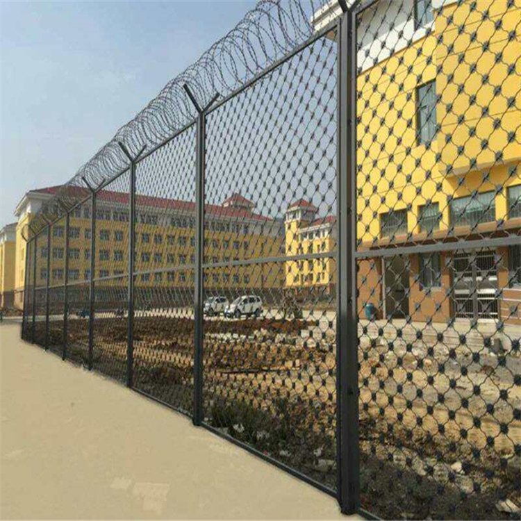 監(jiān)獄鋼網(wǎng)墻:一般鋼網(wǎng)墻高度3--5米,立柱跨度為2-5米--3米。是由防盜美格網(wǎng)加焊防爬刺片而成,美格網(wǎng)的網(wǎng)孔一般為:100X100mm,絲徑為:5-8mm,刺片直徑50-150mm,形狀似太陽,四周布滿刺尖。