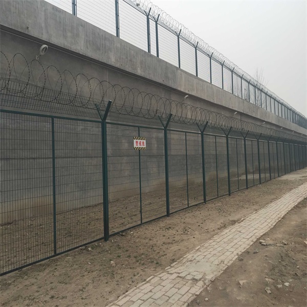 監獄Y型安全防御鋼網墻特殊性,Y型立柱鋼網墻主要采用高強度鋼絲網片與蛇覆式刀片刺網和防盜連接件組合而成,防腐形式有電鍍、熱鍍、噴塑、浸塑。監獄Y型防護網產品特點:立柱采用60*60方管,壁厚2.0mm,焊接成Y型,表面浸塑處理,網片高度2000mm-3000mm,長度2500mm-3000mm,,V型頂端安裝刀片刺網,直徑采用50cm-60cm。