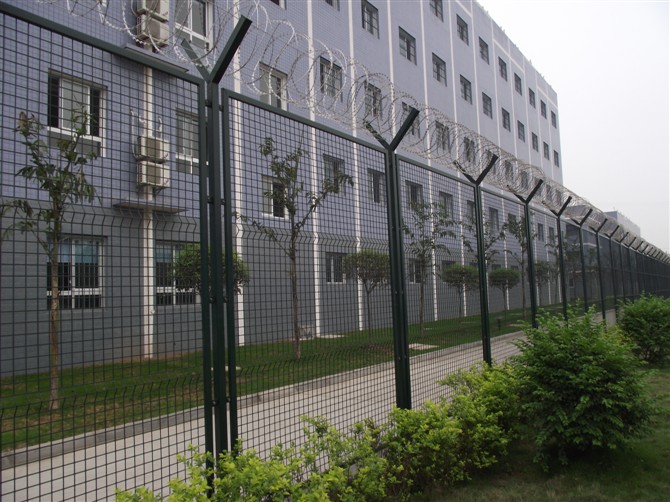 監(jiān)獄鋼網(wǎng)墻的表面處理方式有熱鍍、噴塑、浸塑等防腐形式,具有很好的抗老化、抗曬、耐候等特點。其產(chǎn)品造型美觀、花色多樣,既起到圍欄作用,又起到美化作用。由于具有防攀爬能力好,網(wǎng)片連接方式采用SBS緊扣件,有效防止人為的破壞性拆卸,橫向四道折彎加強筋,使網(wǎng)面強度大大增加。