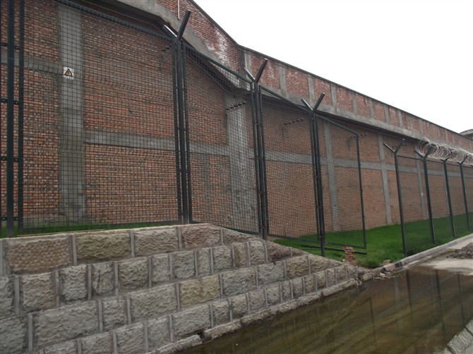 監獄防爬護欄網是監獄中常見的安全防護措施,對防止犯人逃脫起到了重要的作用。其頂部大多都加裝刀刺網,使其安全性能大大加強的同時也不會增加多少成本。加裝刀刺網之后的鋼網墻遠遠看上去令人心生畏懼,采用雙螺旋刀刺網500圈徑的進行卡扣安裝。光樣子就能使罪犯放棄越獄的想法,我公司生產的監獄鋼網墻便能起到如此效果。我們生產的監獄防爬護欄網都是采用優質的鍍鋅鋼絲焊接而成的,在對其表面進行浸塑處理或噴塑處理,一般是采用多的是上塑厚度可到0.8mm以上。防腐效果更出色。