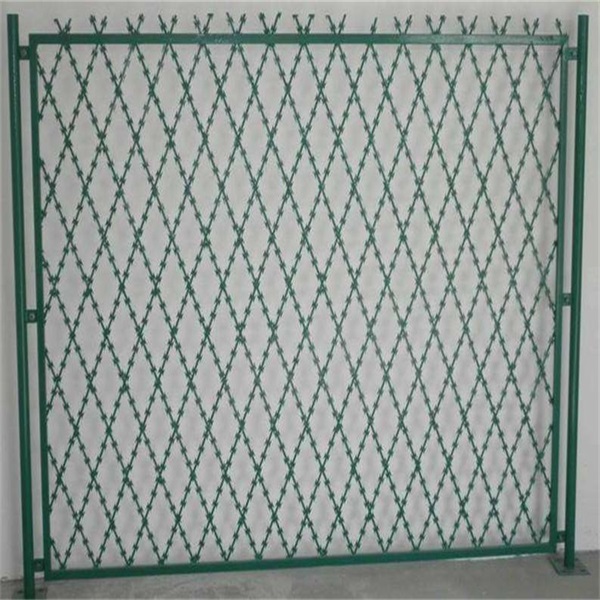 監獄焊接刀片刺網主要是由熱鍍鋅鋼板或不銹鋼薄板沖壓而成的,它擁有尖銳的刀片,非常具有張力、強度。由于刺網的形狀很特別,而且每個角度都有尖狀刀片,因而能達到極好的防御保護效果。在最開始刀刺網只用于圍墻或隔離網上用,后來經過研發,出現了我們大家??吹降倪@款焊接刀刺網,產品具有結構新穎、堅固緊密、網面平整、網孔均勻、刀鋒銳利、防攀爬、抗腐蝕性強等特點??梢越ㄔO于監獄的內外墻地面及高墻之上,形成一道高不可攀、難以逾越的隔離障礙。具有嚇阻、防翻越等效果,材質堅硬,高強度,高張力,造型設計獨特,不宜觸摸,因而能達到極好的防護隔離效果.