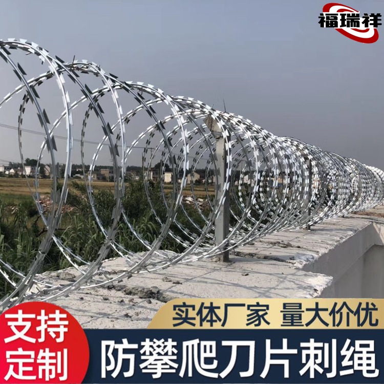 標簽: 刀片刺繩、 刺絲滾籠土字支架、 鐵路刺絲滾籠、 蛇腹形(型)刀刺網、 監獄刀片刺繩、