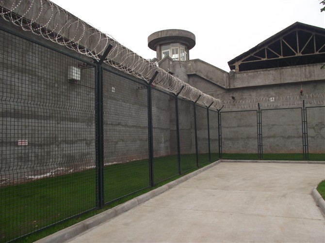 監獄物理安全隔離網根據監獄建筑設計標準要求:中度戒備監獄監管區內的房屋建筑應按罪犯的生活、勞動、學習等活動功能合理布局,各功能用房直以監區為單元進行組臺。各監區之間、監管區內其他主要建筑物之間,應設置高度不小于3m的防攀爬金屬隔離網進行隔離。監獄金屬隔離網是非常重要的監獄安全防護設施,由焊接鋼網加蛇腹形刀刺網組合而成。
